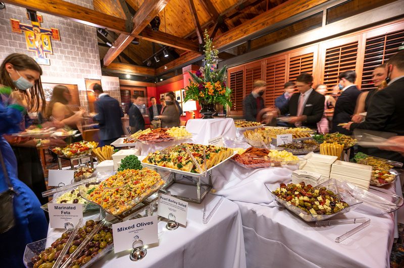 Full Catered Service menus are priced for service in the Connelly Center. Full Catered Service requires an attendant; the attendant fee is the responsibility of the customer. Floral arrangements, and upscale linen can be arranged with our catering coordinators at an additional charge for your event.